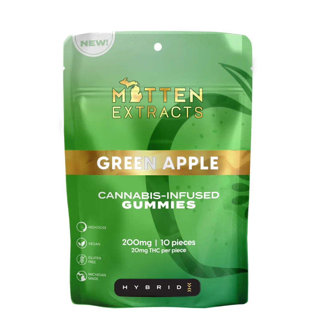 Refresh your edible experience with Mitten Extracts – Green Apple Gummies 200mg crisp, tangy, and bursting with flavor in every bite.