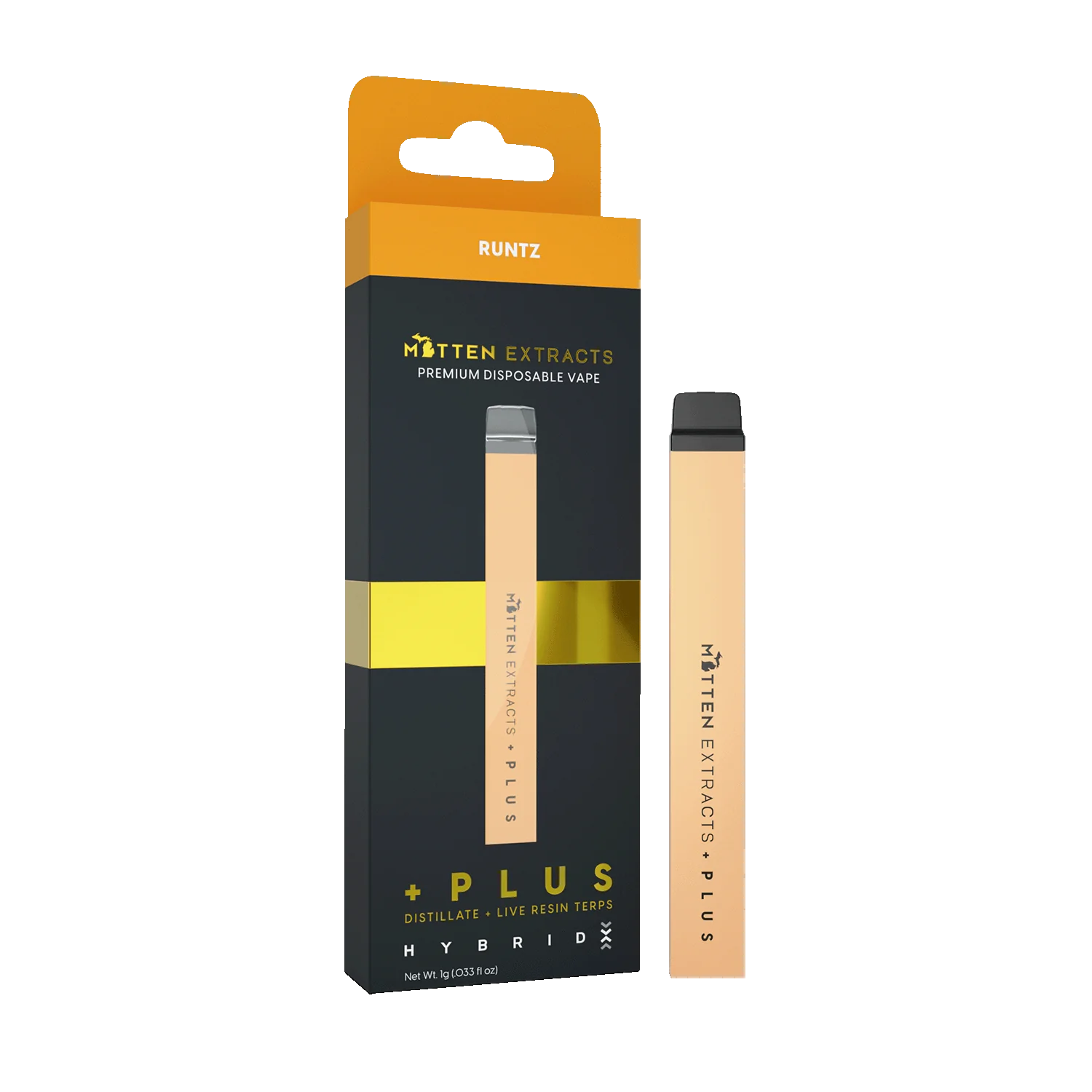 Experience sweet, flavorful bliss with the Mitten Extracts + Plus Disposable Runtz 1g (Hybrid). This premium disposable vape combines high-potency distillate with the iconic candy-like taste of Runtz, delivering a perfectly balanced hybrid effect in a convenient, ready-to-use device. With upgraded +Plus hardware, enjoy smooth draws, consistent vapor, and rich, strain-accurate flavor from the first puff to the last.
