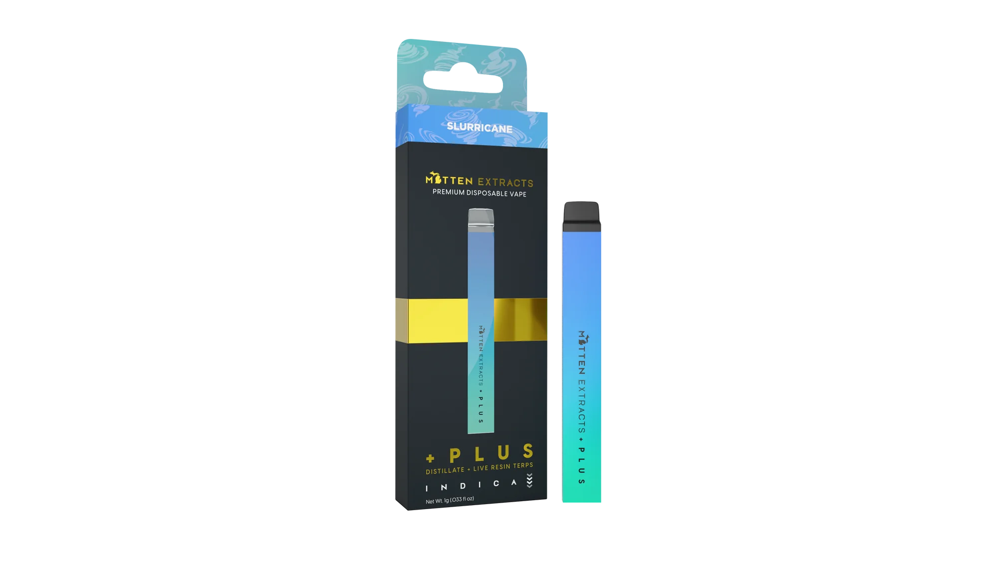 Immerse yourself in deep relaxation with the Mitten Extracts + Plus Disposable Slurricane 1g (Indica). This premium disposable vape combines high-potency Mitten Extracts distillate with the sweet, fruity, and berry-forward flavor profile of Slurricane, delivering a soothing indica experience in a convenient, ready-to-use device. The +Plus hardware ensures smooth draws, consistent vapor, and rich, strain-accurate flavor with every puff.